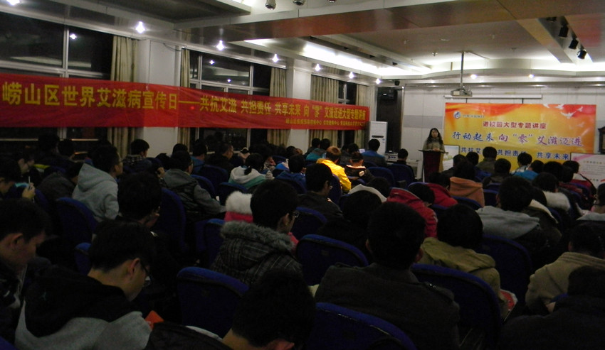 值此世界艾滋病日到来之际,11月27日,由青岛市崂山区卫生局、崂山区教育体育局主办,青岛市崂山区疾病预防控制中心、青岛科技大学青尘义工队承办的“行动起来,向‘零’艾滋迈进——进校园专…