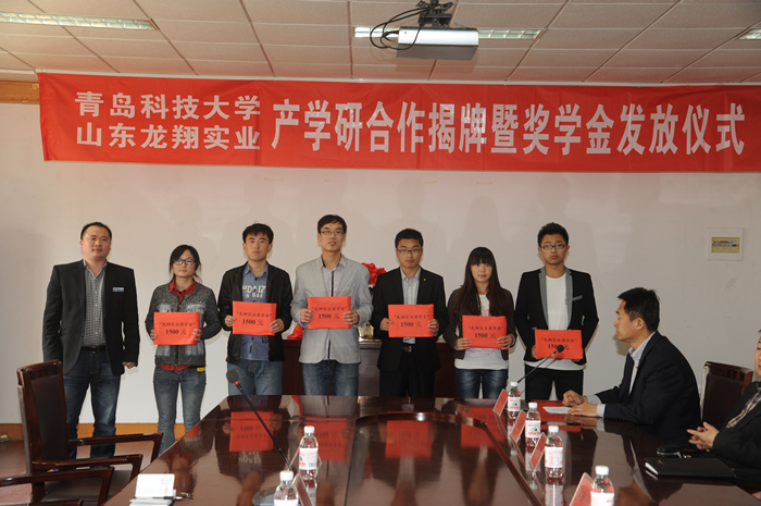 4月18日上午,青岛科技大学龙翔实业研发中心揭牌暨“龙翔实业”奖学金发放仪式在经管无码人妻 楼313会议室举行。
