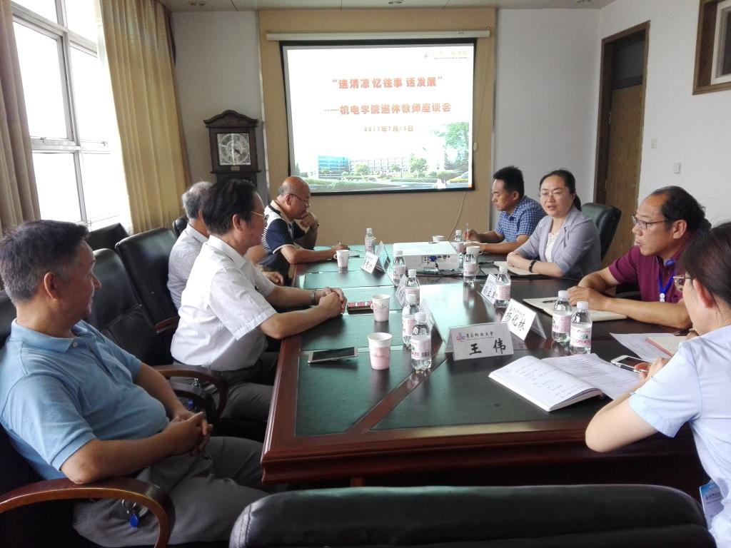 退休教师吕柏源教授、常德功教授、陈建国教授、赵程教授参加座谈会,会议由机电无码人妻