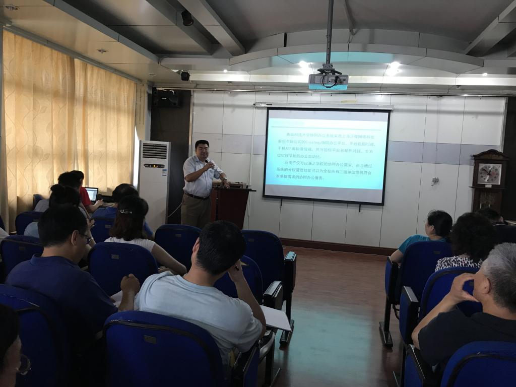 OA系统工程师就OA系统的基础设置、工作流程、流程版块等几个方面给老师们进行了讲解,通过文字和图片系统清晰的介绍了校内请示报告如何提交运行,并介绍了工作门户中快捷功能区的作用和个人信息如何设置,方便今后老师们对OA系统的使用。讲解结束后,OA系统工程师针对老师日常实际使用中出现的问题和困难进行了解答。